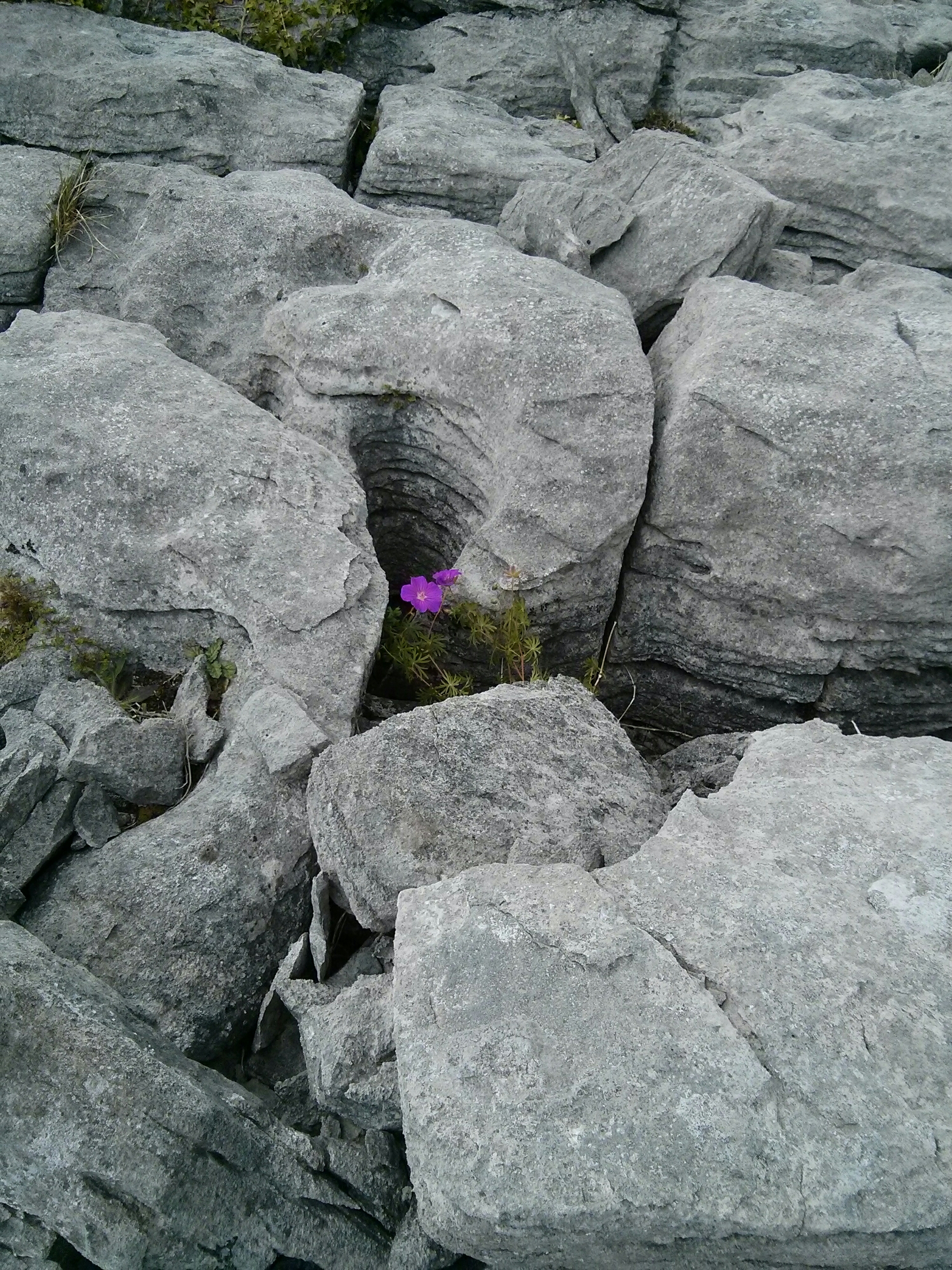 The Burren is a natural wonder of the natural world. Situated in the west of Ireland it is an area of outstanding beauty that should be on everyone’s bucket list. It consists of a huge area of limestone outcrops and pavements, with brightly flowered plants living precariously but abundantly in the joints and cracks in the limestone. As I said, everyone should visit it.