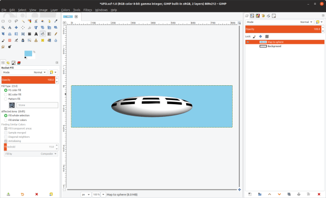 At this stage I saved the image to disk, in case of accidents. The GIMP lets you undo the steps that you have taken in editing or creating an image, but sometimes (especially if you are experimenting), it is useful be able to abandon all your fiddling and start again from a known good image. However, saving an image means that you can’t backtrack from that version of the image.
