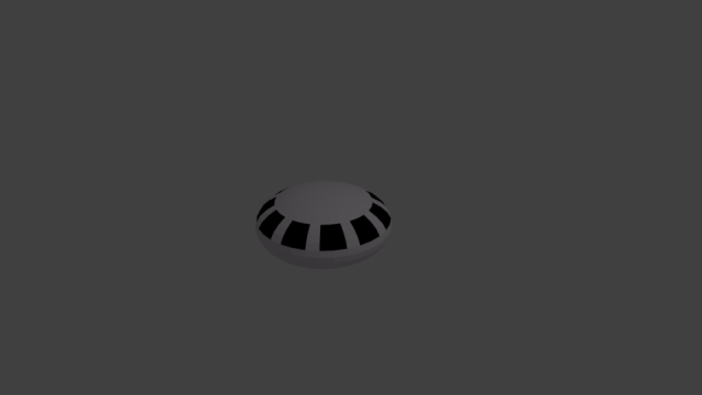 I continued to familiarise myself with the Blender interface by playing around with house models, and then I decided to try to recreate my UFO from the GIMP in blender. Here it is, in Blender. Unfortunately, the image is quite small.